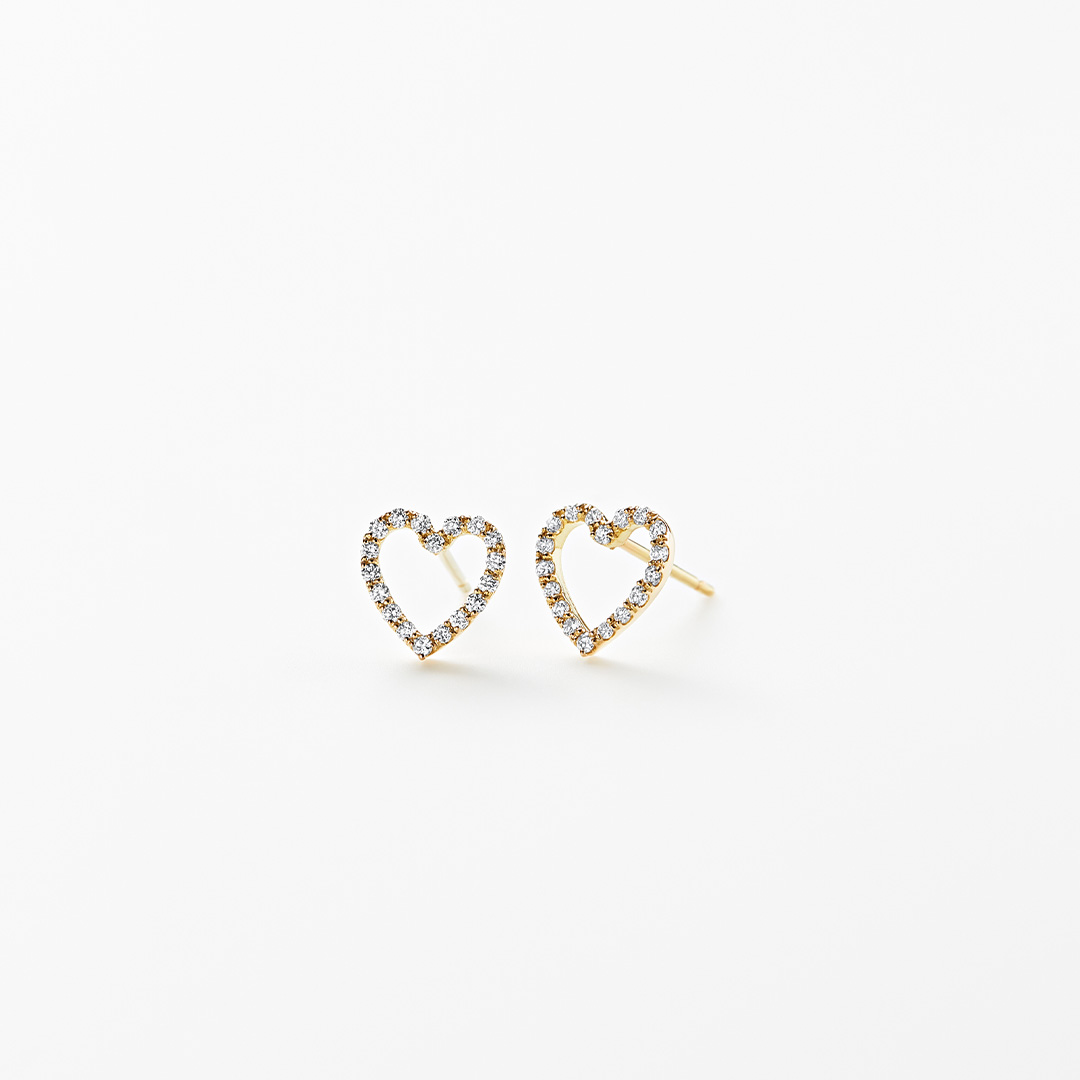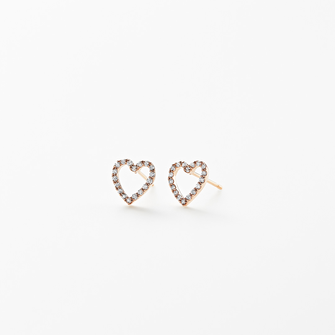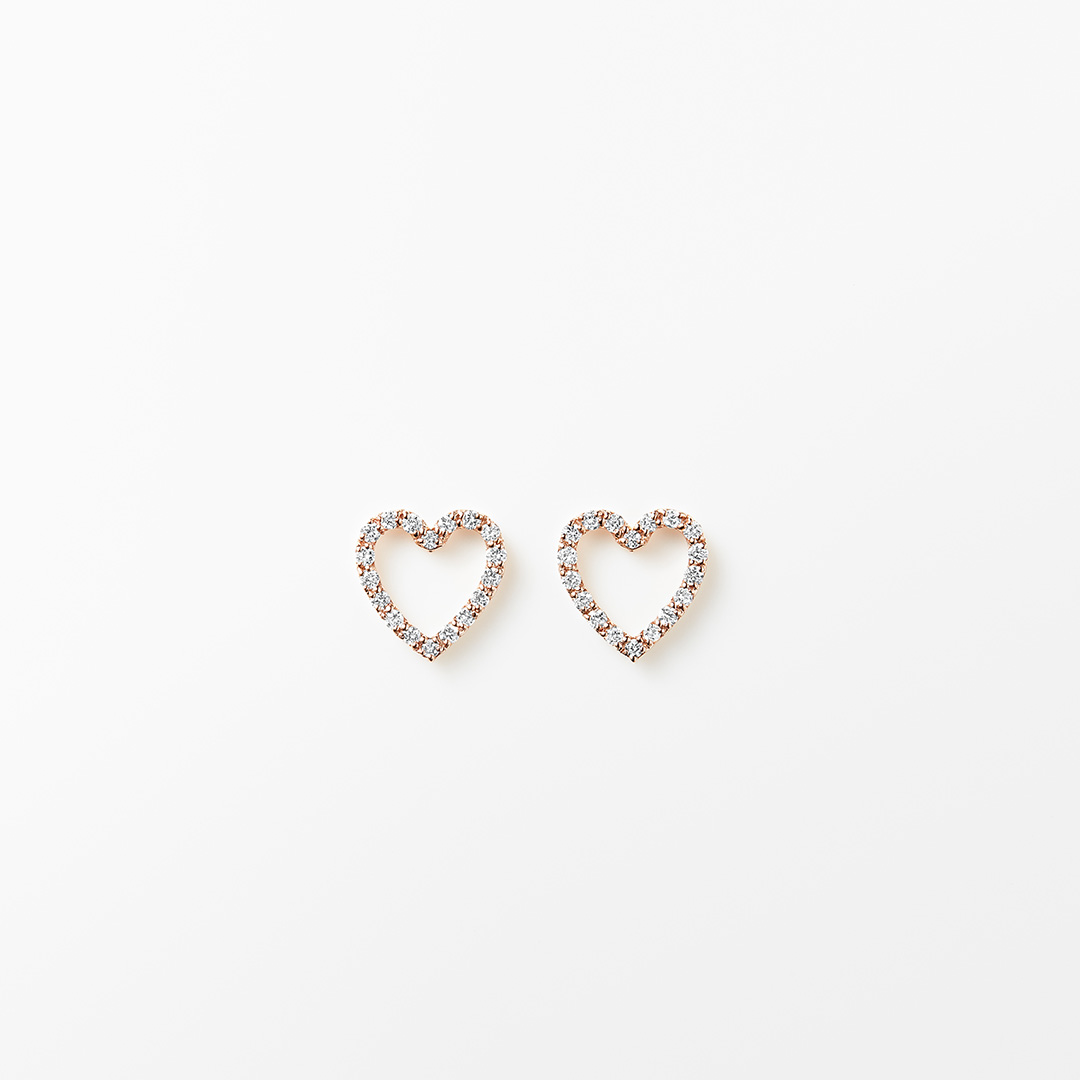 フランス語で「幸福」を意味する BONHEUR。小さなダイヤモンドが敷き詰められた繊細なオープンハートモチーフが 肌の上で優雅に連なります。肌に溶け込むほど薄く仕立てられたその輝きは 自然に寄り添い 身につける人の内なる美しさを引き立てます。